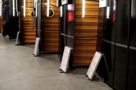 Große Papierbahnen auf Plastiktonnen.